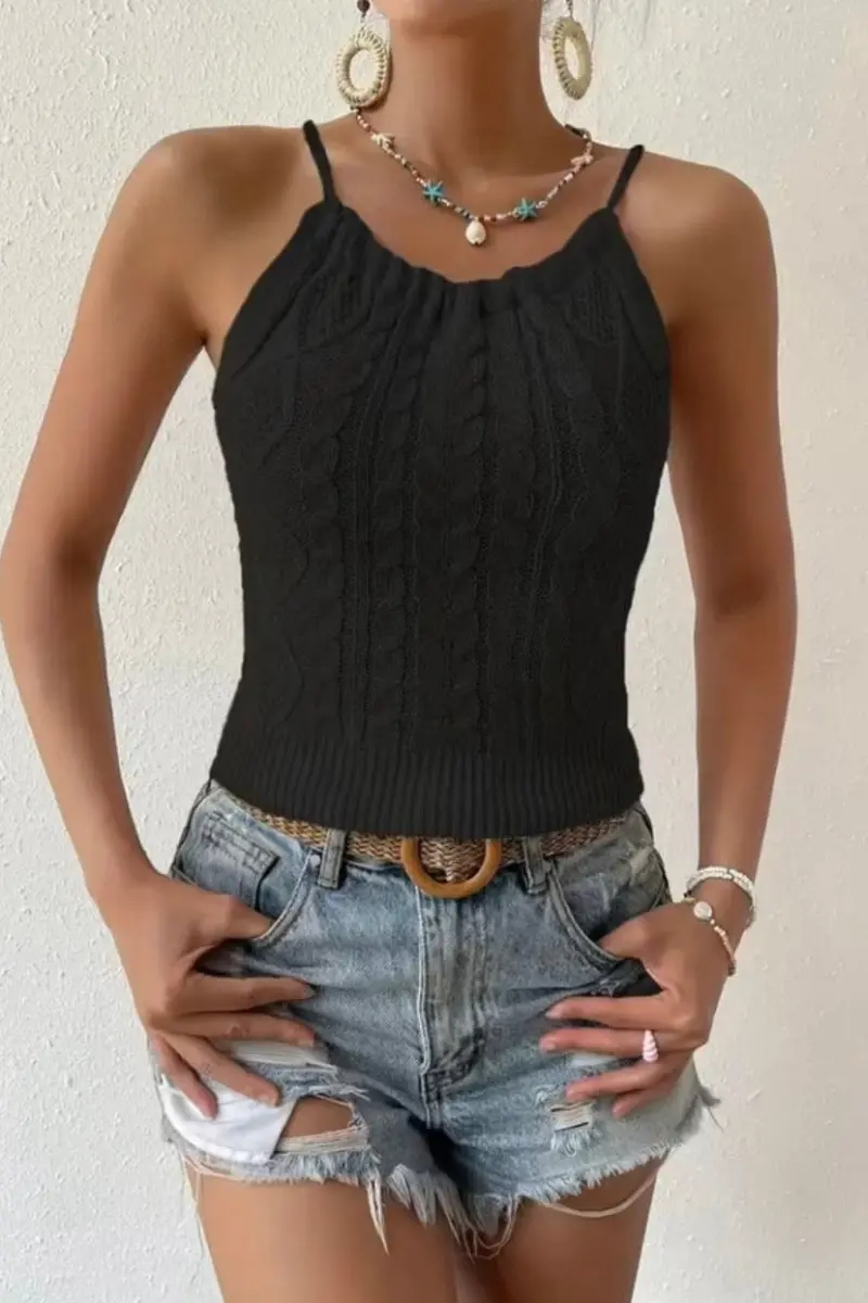 Haut Nilya – Débardeur côtelé noir sans manches